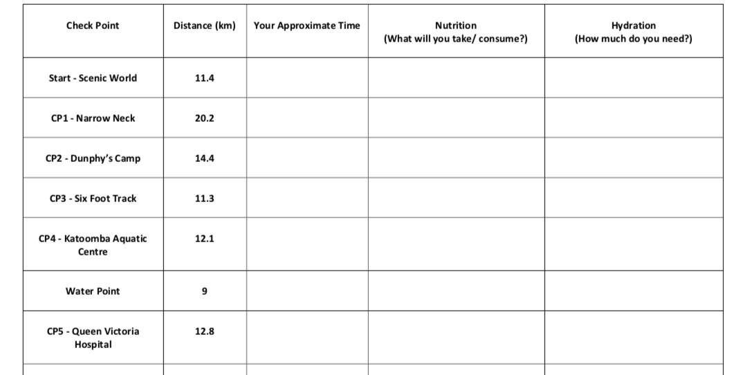 UTA 100km Nutrition & Hydration Template